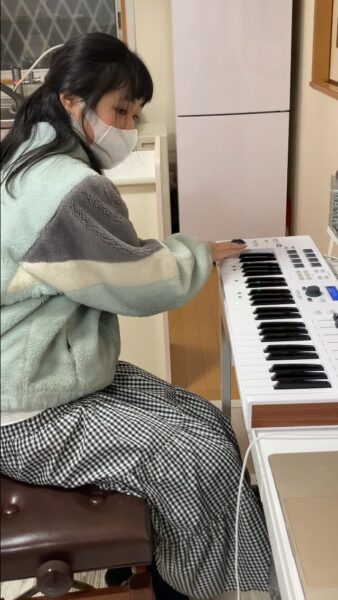 パソコンでの曲づくりも慣れてきて、音やリズムを試しながら、自分で選んで組み立てています。